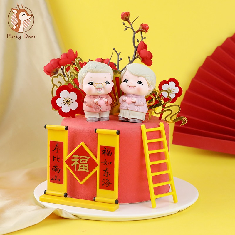 Prunus Longlife Grandpa Grandma Cake Topper For Chinese Longevity Birthday Party Decoration Blessing Baking Supplies Dessert Shopee Philippines
